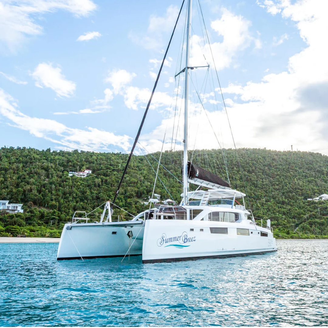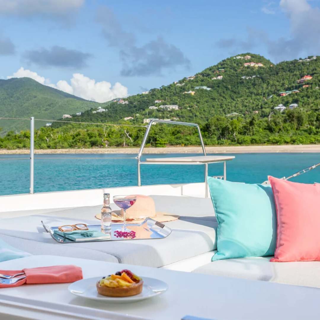 Charter the Voyage 590 catamaran in the British Virgin Islands. A luxury sailing yacht ideal for large groups and fully crewed BVI charters.