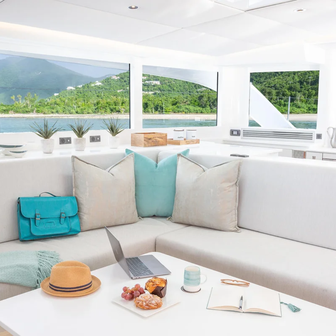 The Voyage 590 typically accommodates up to 12 guests, depending on configuration, with spacious cabins offering comfort and privacy. Despite its size, the yacht handles the calm BVI waters with ease, allowing access to popular destinations including Anegada, Virgin Gorda and Norman Island.