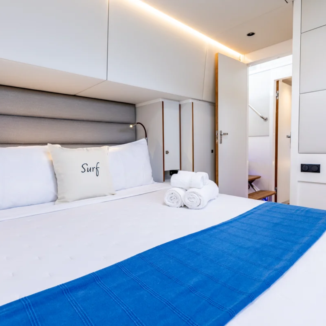 The Voyage 590e features expansive living areas, upgraded interiors, generous deck space and smooth sailing performance. Cabins are designed for comfort, making it ideal for longer charters and premium experiences.