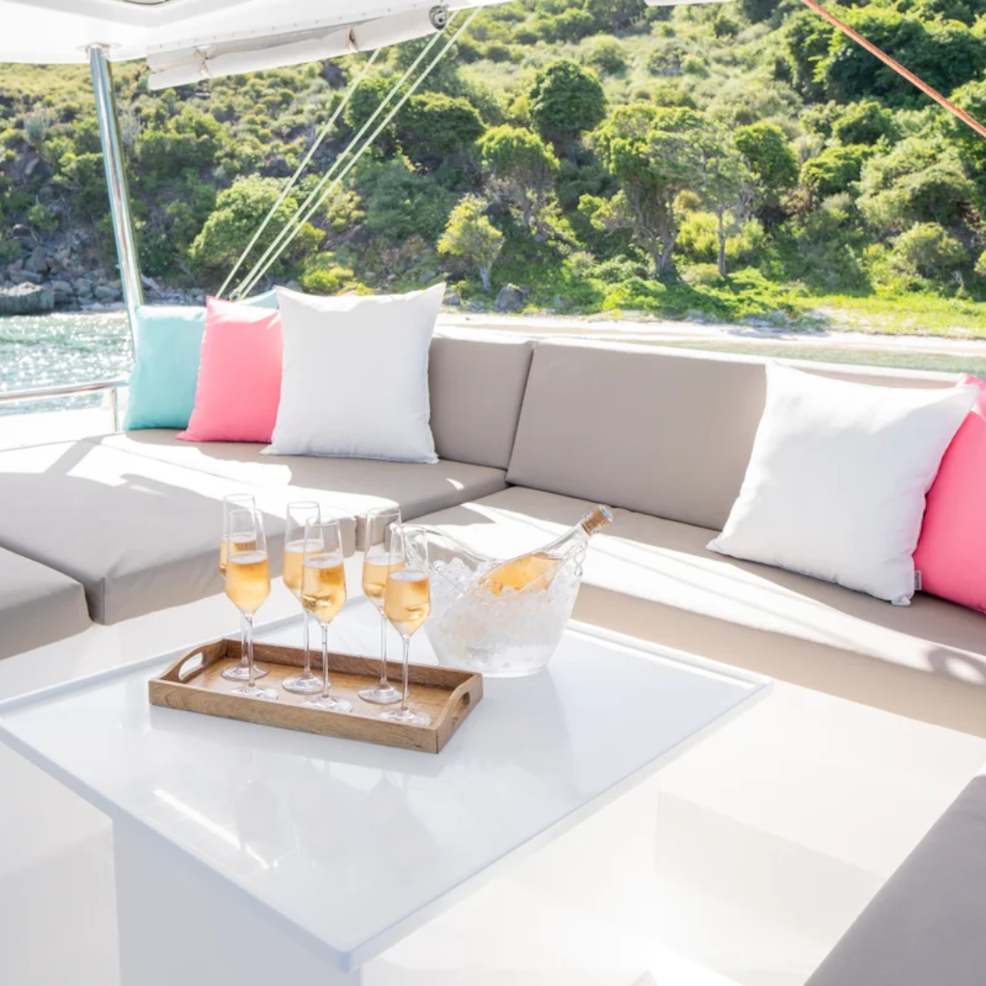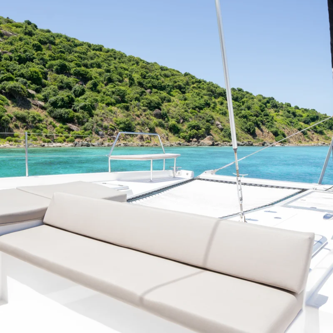 Charter the Voyage 590e in the British Virgin Islands. A modern, high-spec catamaran ideal for luxury crewed yacht charters.